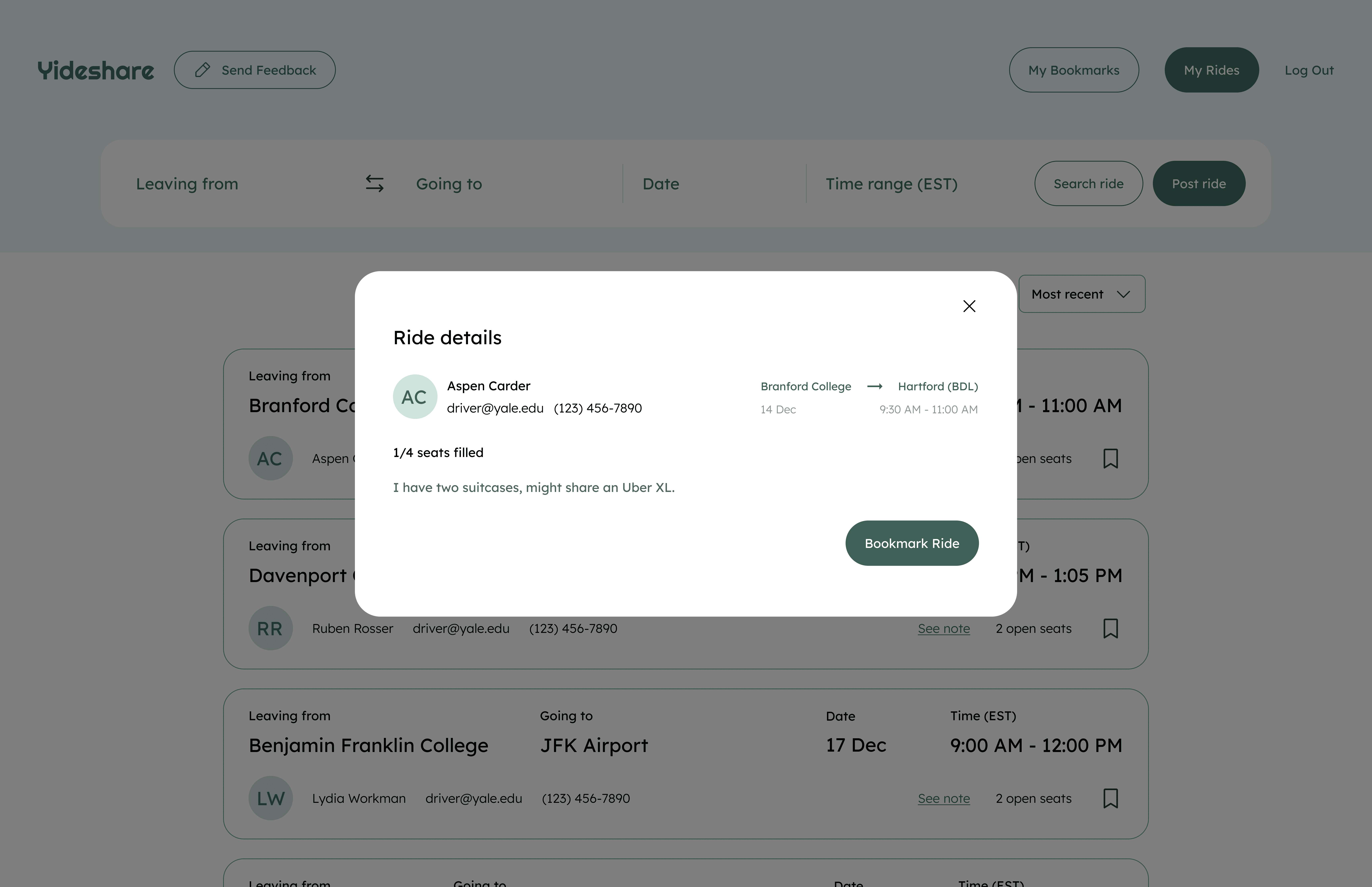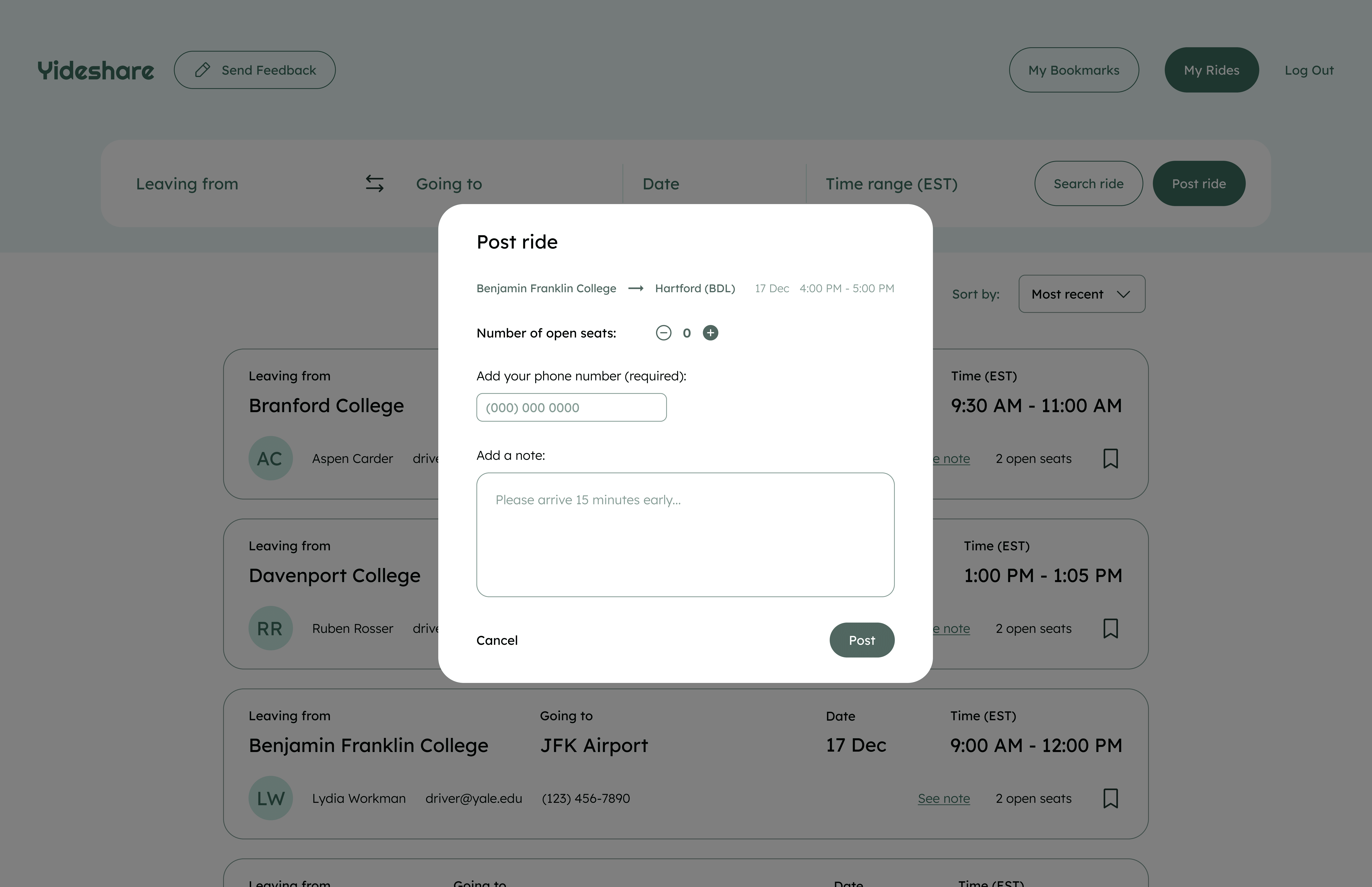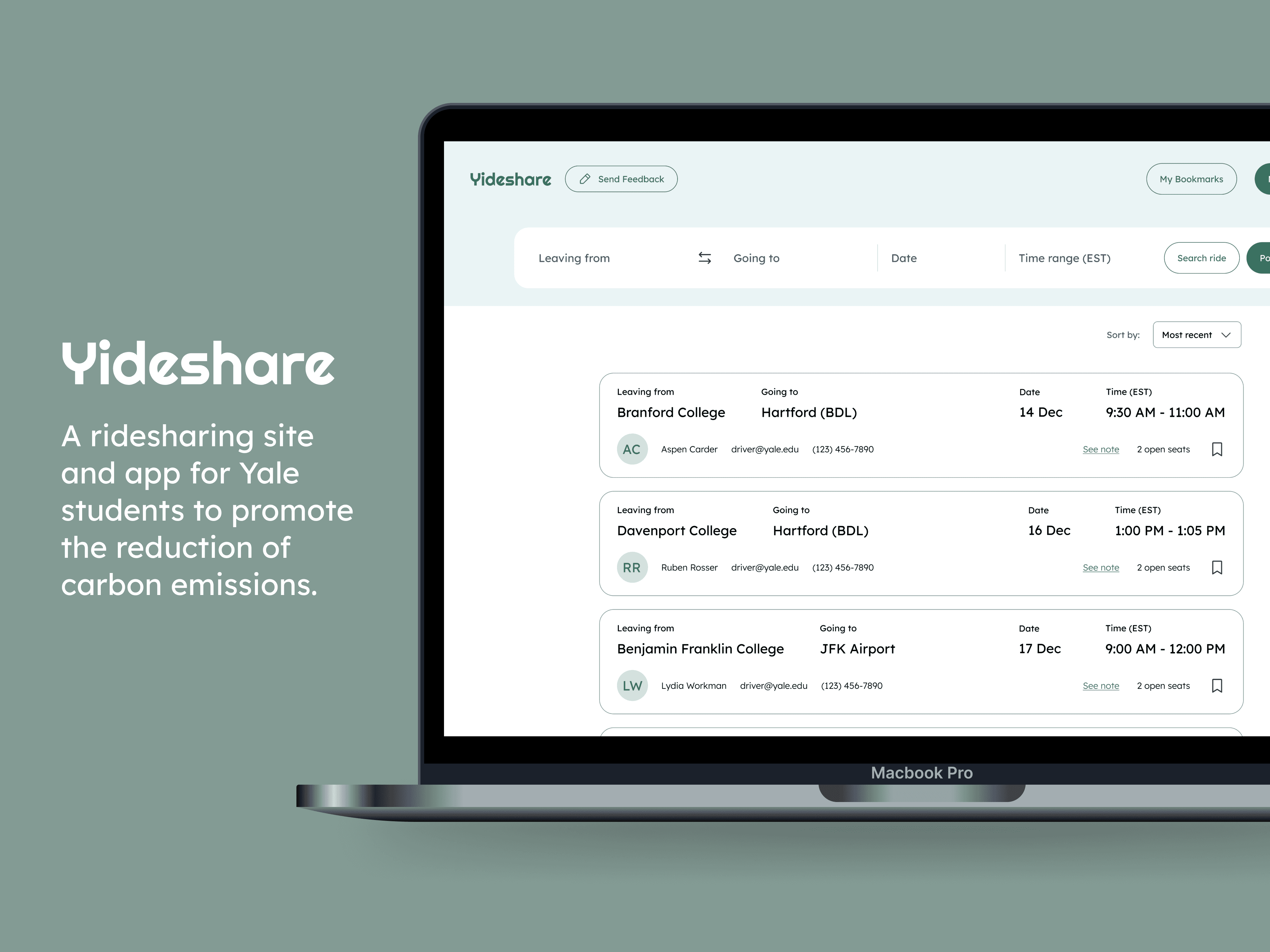 A ridesharing website and app for Yale students to promote the reduction of carbon emissions
